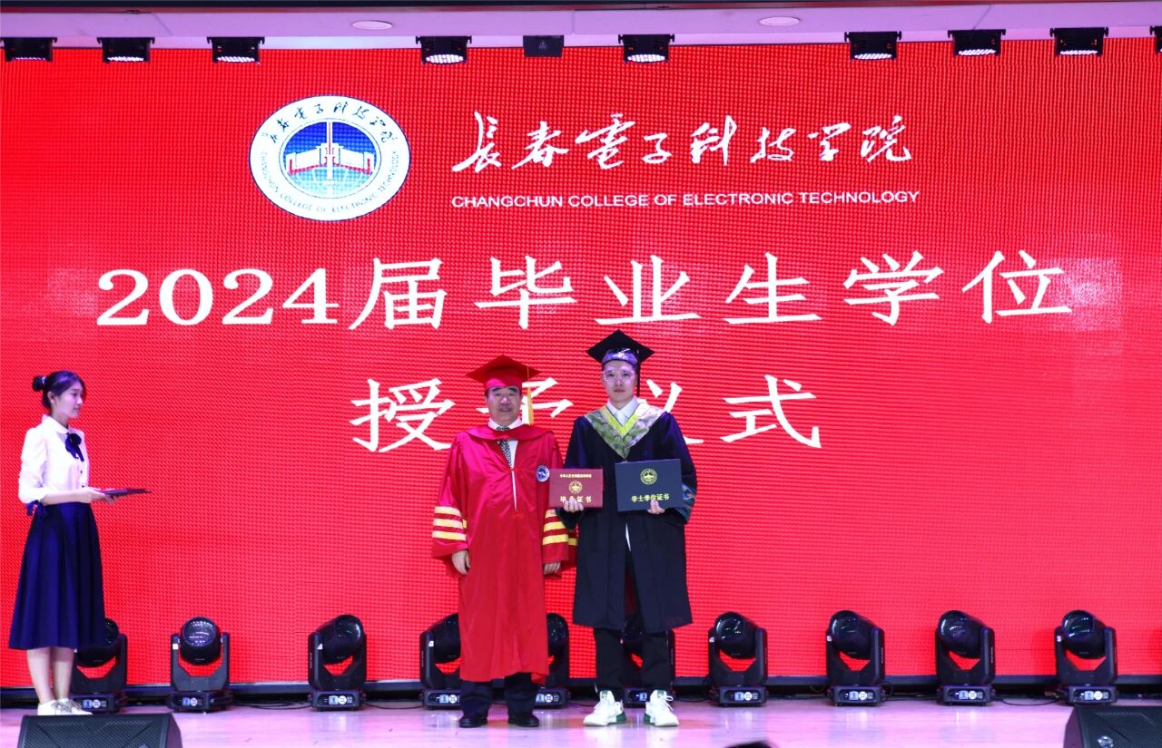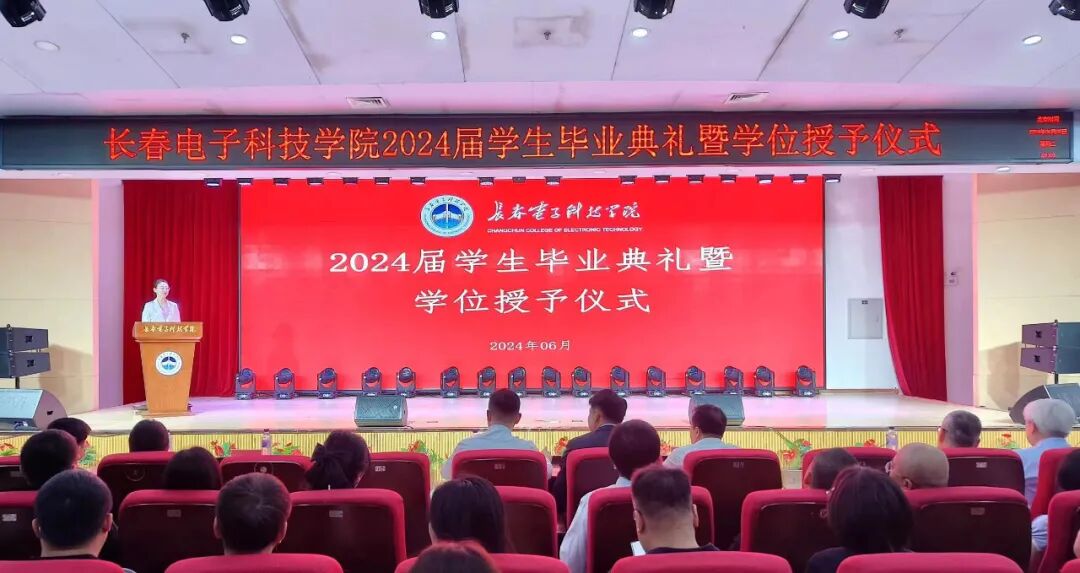 6月25日上午,长春电子科技学院2024届学生毕业典礼暨学位授予仪式在报告厅隆重举行,热情欢送2024届毕业生走出校园,踏上人生新征程。学校领导、各学院、各处室负责人以及教师代表、在校生代表、毕业生代表出席,仪式由教务处处长徐子奇主持。
