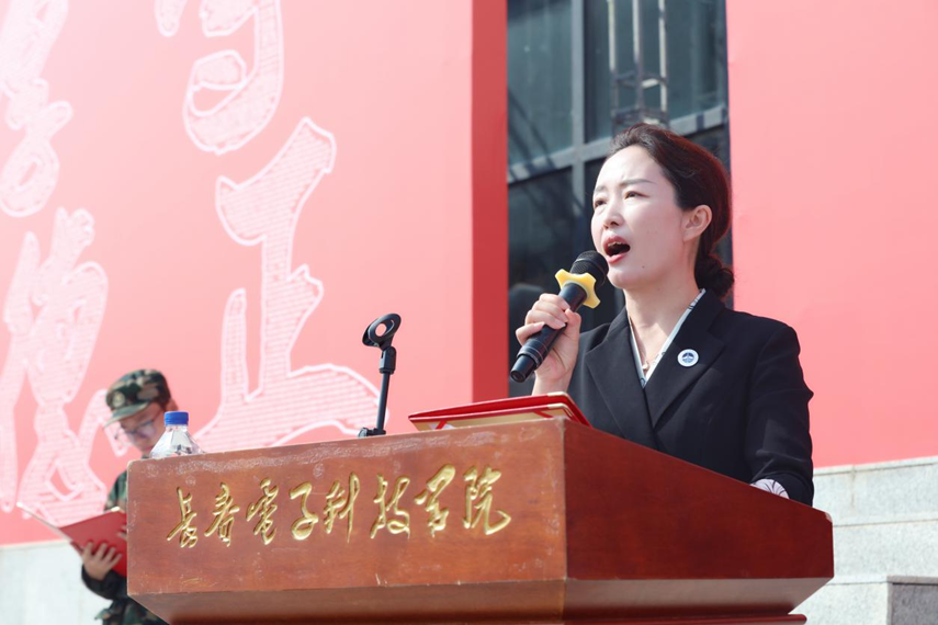 大会第三项,学校副董事长、党委副书记、执行校长鞠秀晶同志宣读《关于长春电子科技学院2025级学生军训表彰的决定》。