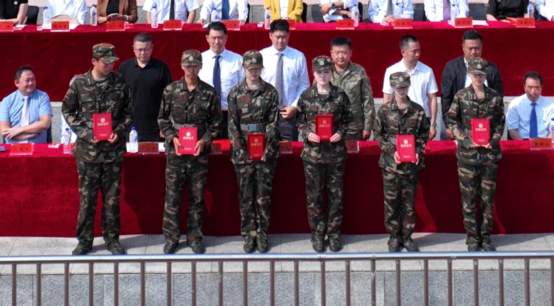 大会第四项,学校对军训中表现突出的个人与集体开展集中表彰。经各连队评比考核后,校领导为获奖个人和单位依次颁奖。