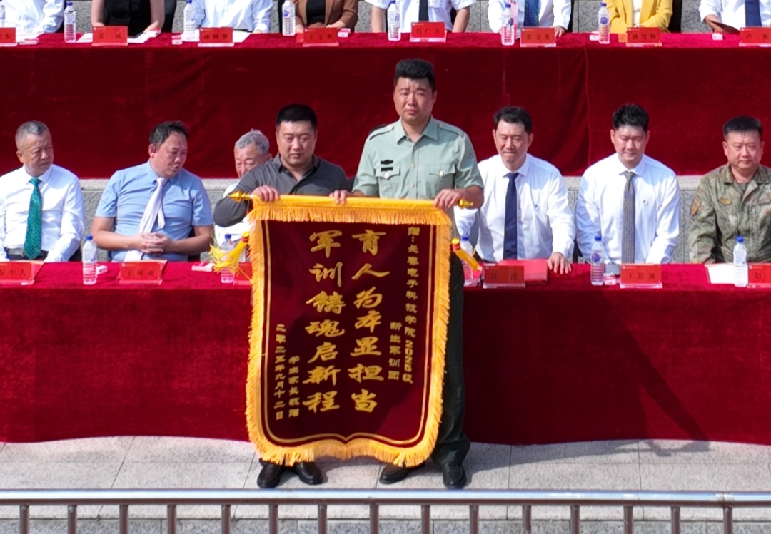 第五项,家长代表上台向军训教官团队与学校赠送锦旗。这面锦旗承载着家长对学校的信任与期待,更彰显了家校共育的深厚情谊。